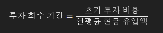 투자 회수 기간의 기본 공식은 다음과 같다.투자회수기간 계산식